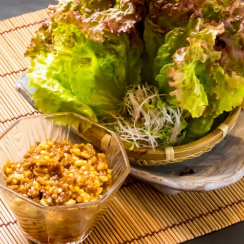 納豆とピリ辛挽肉のレタス包みはリピーター続出の逸品です♪